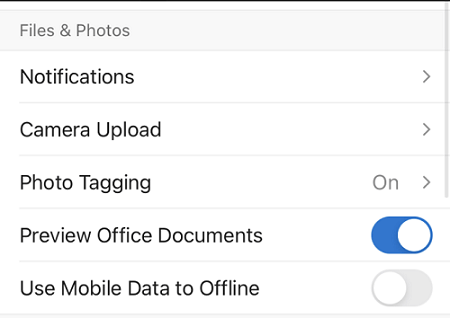 Step 4. When you see Camera Upload option, tap on it.