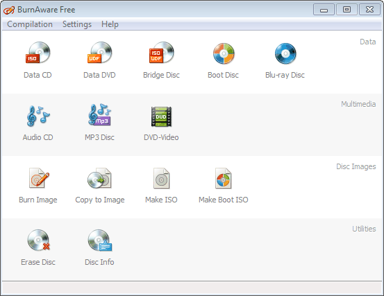 Desenvolvedor: Tecnologias BurnAware Licença: Grátis Tamanho / OS: 4.8MB / Todos os Windows Baixe BurnAware Free Olhando para a janela principal, você pode ver que é um software de gravação completo e fácil de usar. Ver detalhes: Como gravar arquivos ISO no disco |
