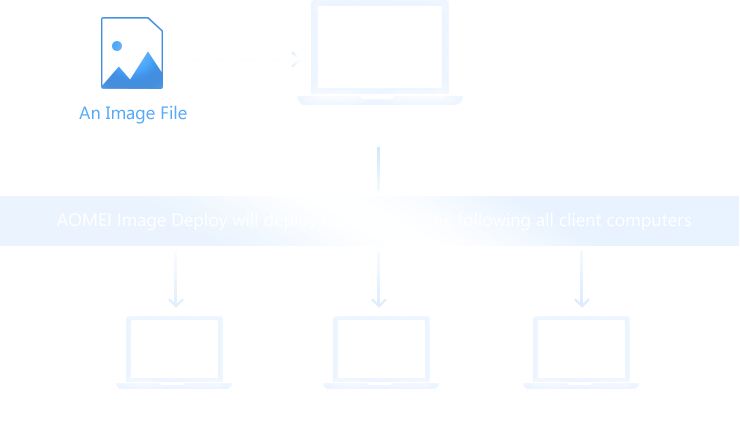 AOMEI Image Deploy é um software GRATUITO de implantação de imagens e de clonagem de rede que suporta a implantação / restauração de uma imagem em vários computadores pela rede. Ele não apenas oferecerá uma solução gratuita para implantar a imagem do sistema em vários computadores na LAN, mas também ajudará você a economizar tempo e recursos, fornecendo centenas de PCs e servidores simultaneamente.