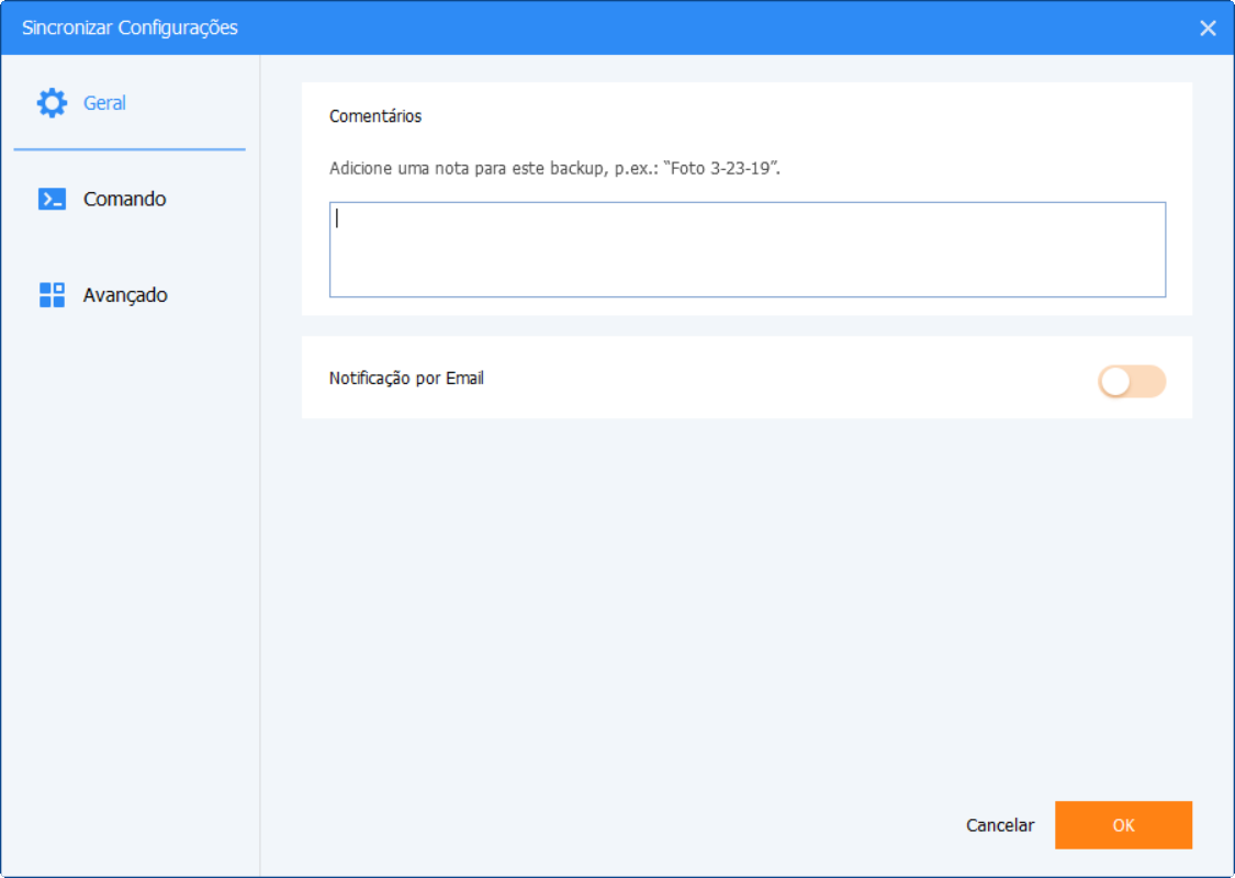 Assim, um caminho mais fácil é essencial. Eu recomendo que você livre AOMEI Backupper, que pode ajudá-lo a sincronizar arquivos sem esforço. No AOMEI Backupper, você pode sincronizar arquivos para todos os tipos de dispositivo de armazenamento, incluindo computador local, unidade de rede, unidade de nuvem como Google Drive, Dropbox, NAS, etc. Além disso, você pode ativar a notificação por email para garantir que a operação seja concluída com sucesso. Você pode sincronizar arquivos dia a dia, semana a semana, mês a mês.