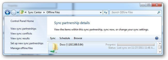 2. Sincronize arquivos off-line entre o computador e a unidade de rede.