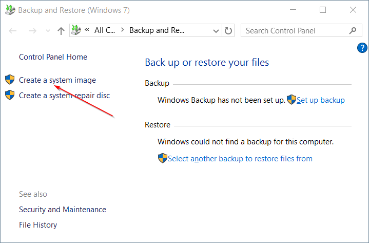 Quando o backup é feito, você também pode criar um disco de reparo do sistema. Quando não houver pontos de restauração do sistema após a atualização do aniversário do Windows 10, você poderá restaurar o sistema, mesmo que ele não seja inicializado. Se você sofreu a falha da ferramenta de backup do Windows, convém usar um software de backup gratuito de terceiros para fazer backup do Windows 10.