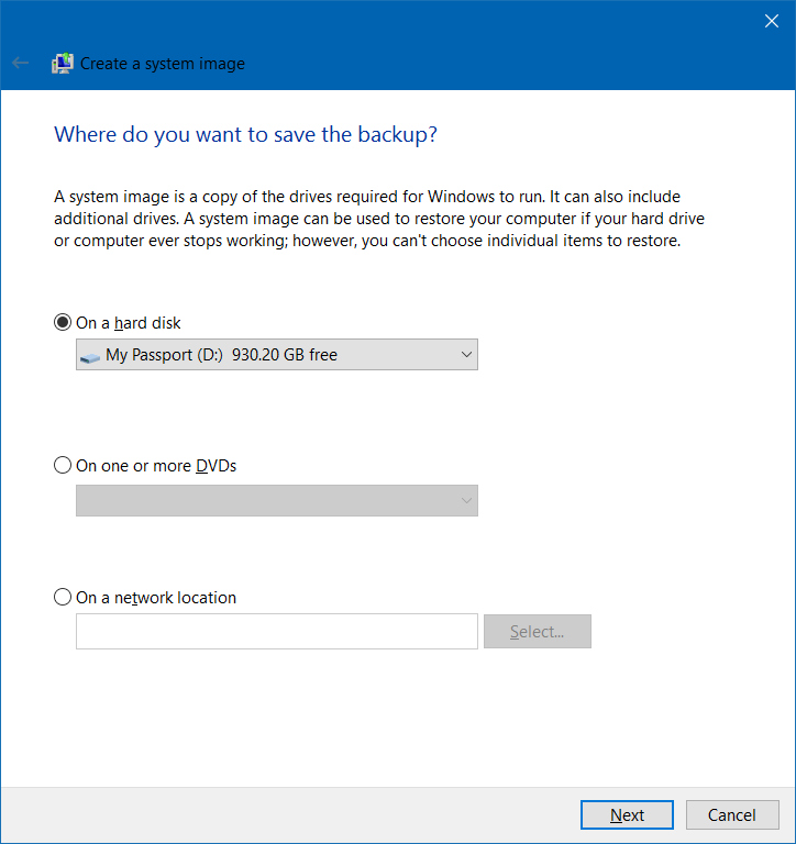 Criar backup de imagem no Windows 10
