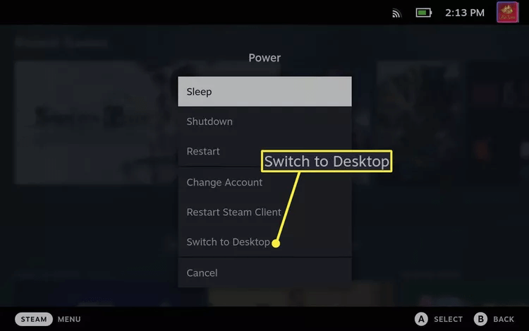 Step 1. Press and hold the power button on your Steam Deck, then choose "Switch to Desktop" from the menu that appears.