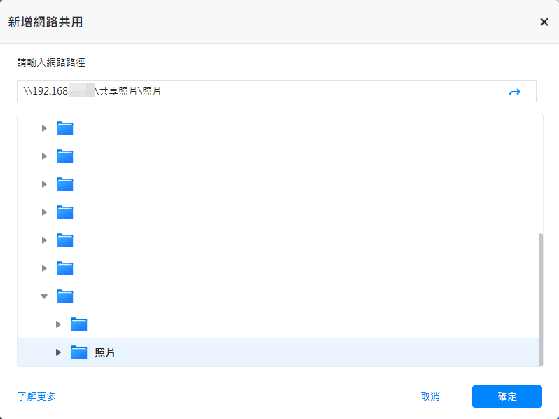 步驟4. 然後,選擇要備份的NAS裝置上的資料夾,然後點擊“確定”。您可以一次添加Synology NAS上的所有資料夾。