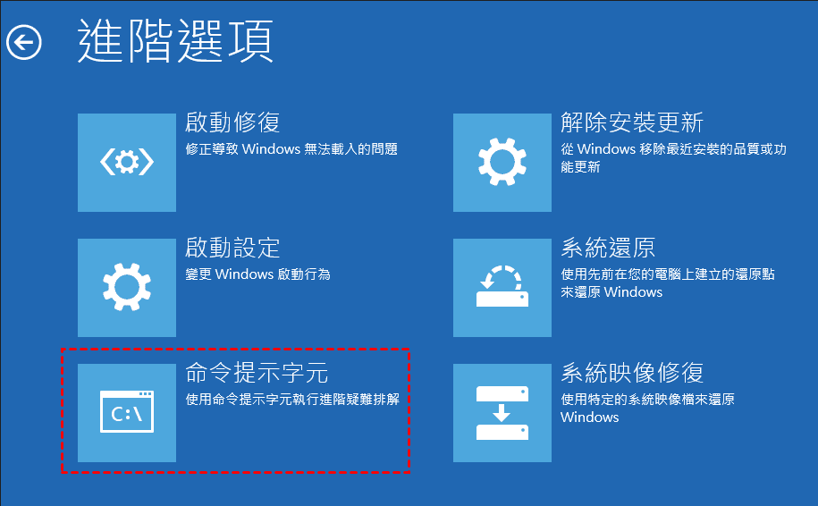 3.隨後選擇疑難解答 > 進階選項 > 命令提示字元。