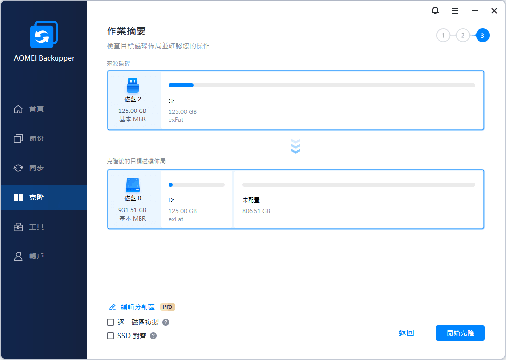 - SSD對齊:如果您是將磁碟克隆到SSD, 勾選此選項可提高其讀寫性能。