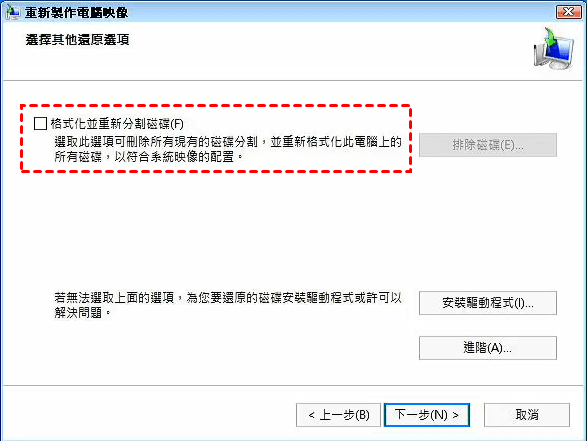 然而,如上所述,系統映像復原方法較為複雜且容錯性較差。如果透過還原方式移動作業系統失敗,可以考慮第一種方法。