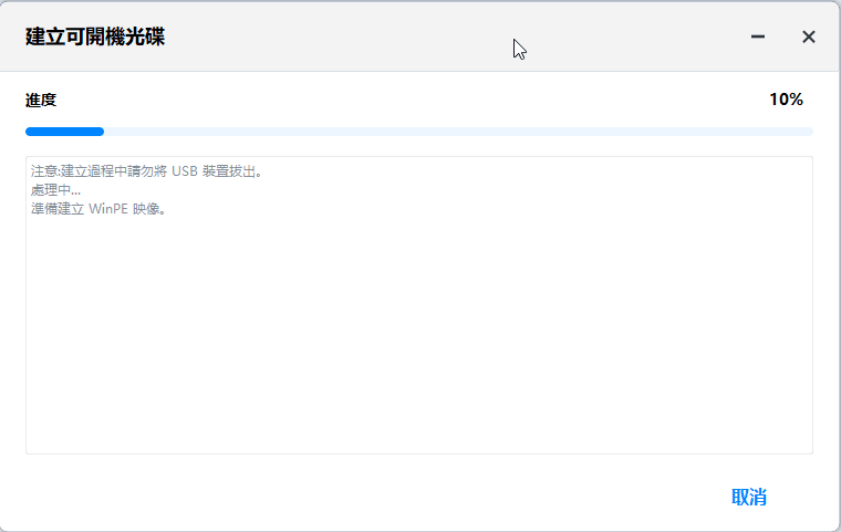3. 然後,您只需等待進度完成,即可成功建立可開機裝置。