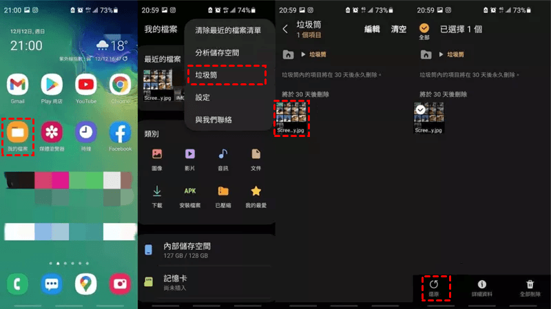 如何解決Android手機中照片遺失的問題?最簡單的方法就是從垃圾桶中還原。以下步驟以Samsung手機為例: