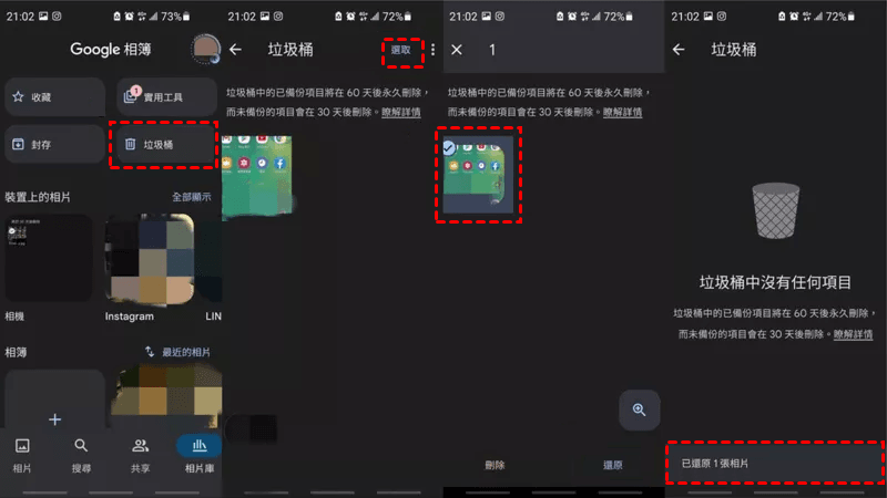 方法2、從Google相簿中救回遺失的照片