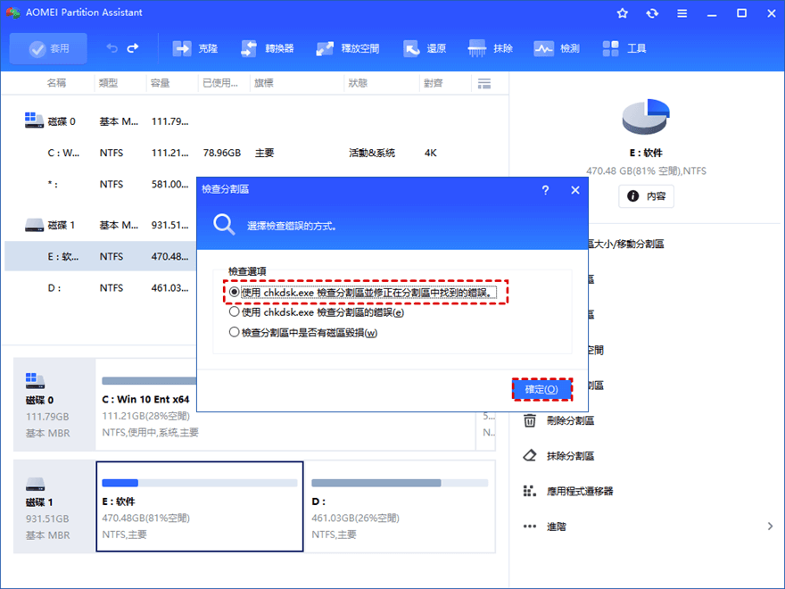 此外,AOMEI Partition Assistant還是最好用的分割區管理工具,可用於錯誤檢查和其他分割管理作業操作,幫助您修復損壞的SD卡。