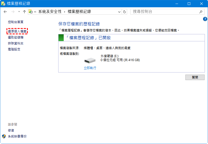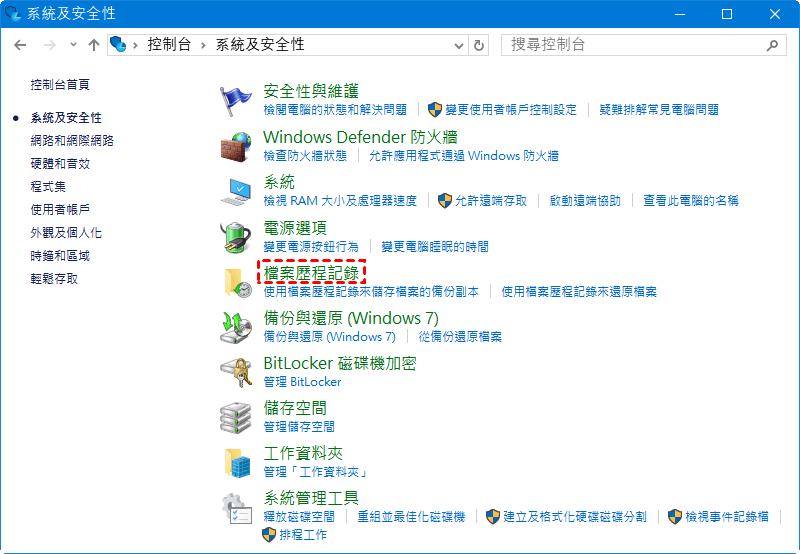 方法2. 利用檔案歷程記錄來進行檔案復原