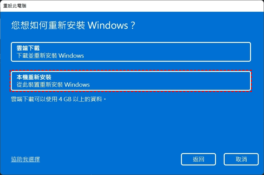 4、選擇重新安裝Windows系統的方式,從雲端下載或者從本機重新安裝。