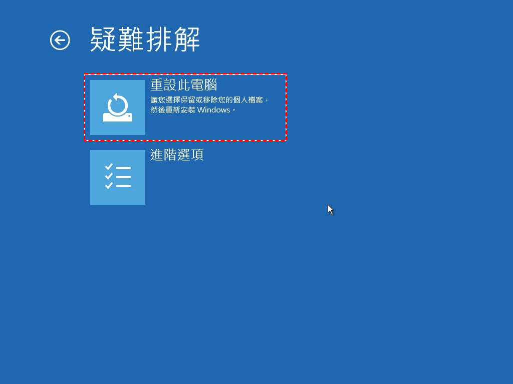 注意:此方法要求您的華碩筆電有恢復分割區才能使用。此外,您的檔案可能會在此過程中被洗掉,請謹慎操作。