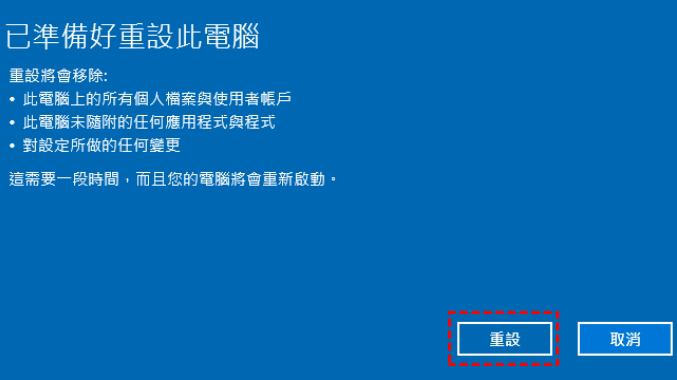 如果您的電腦系統是Windows 10及更高版本,則推薦您使用Windows系統內建的重設功能將華碩筆電還原到原廠設定。請注意,此方法允許您的自行選擇是否刪除保留檔案。