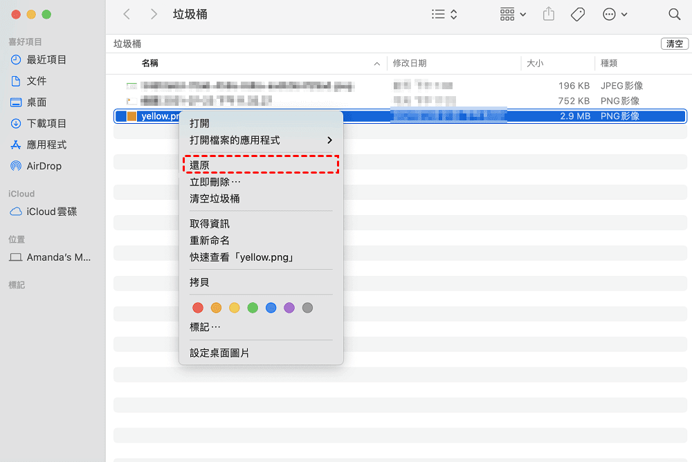 Mac電腦內建的垃圾桶與Windows資源回收筒功能相同,都可以幫助您暫存刪除的檔案(圖片),您可以在此期間隨時進行圖片復原。