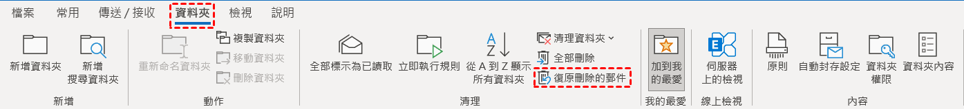 發現Outlook郵件被意外刪除時,請先確認它是否被永久刪除。如果只是常規刪除,可以從「刪除的郵件」資料夾進行復原。