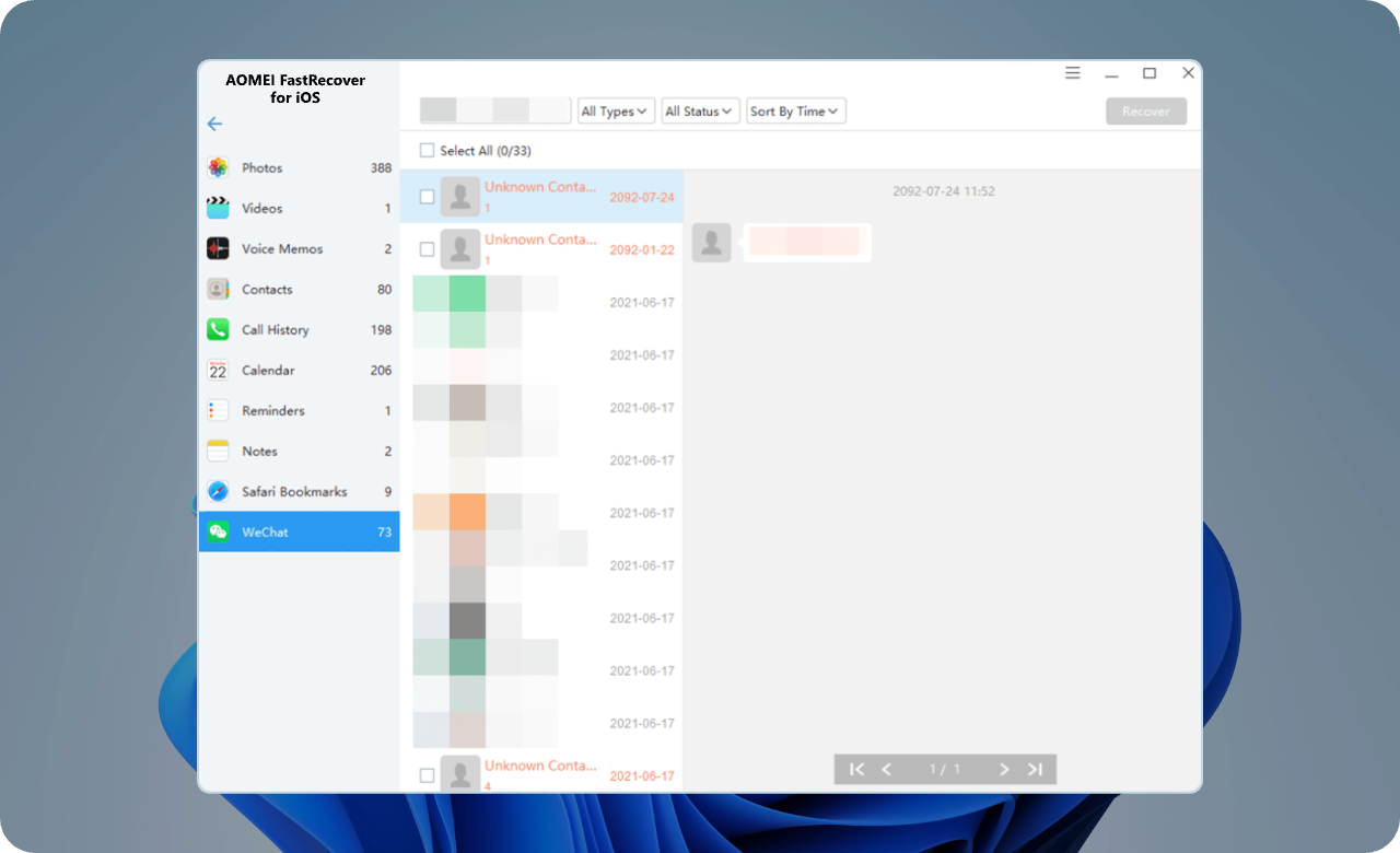 全面的iPhone資料恢復軟體支援恢復微信聊天記錄、圖片、影片、音訊、微信群歷史記錄等。