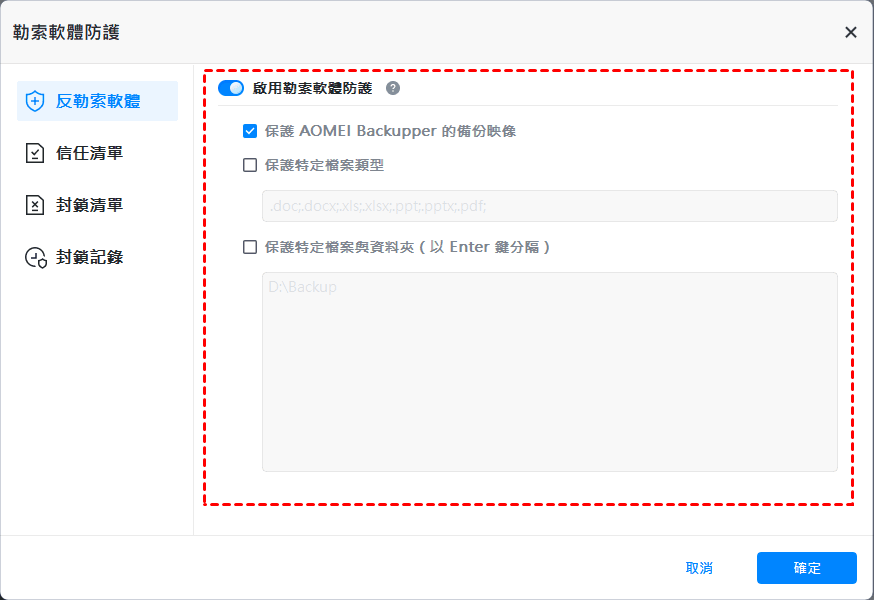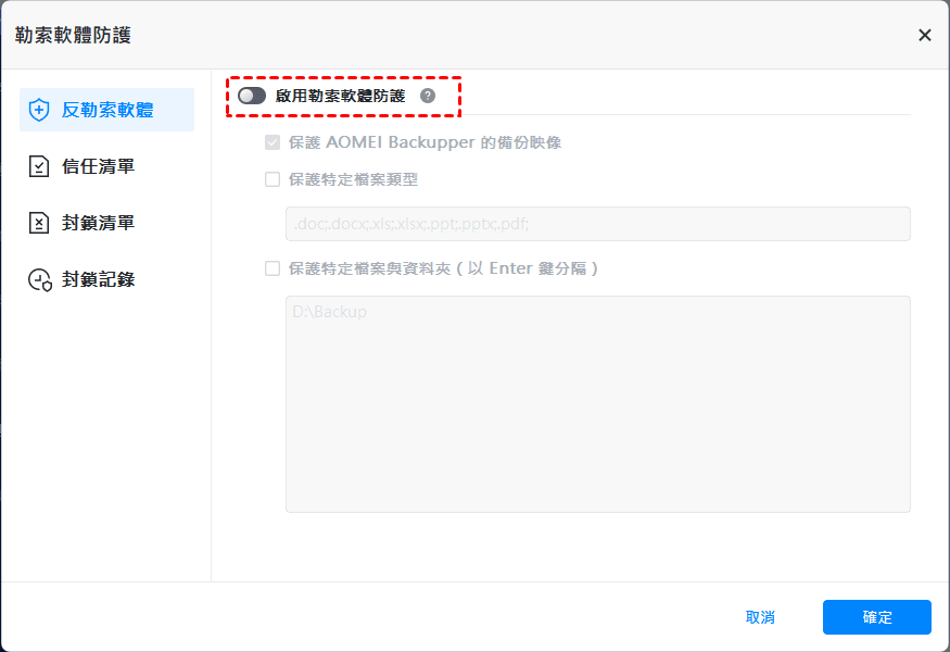 如何在AOMEI Backupper中啟用勒索軟體防護?