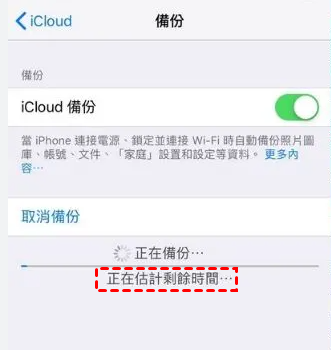 如果您只是為了做好iPhone、iPad數據的定期備份,那麼可以嘗試多等待一會兒。因為裝置中的數據太多,且如果又是第一次執行iCloud備份,預估的時間就會更長一些。