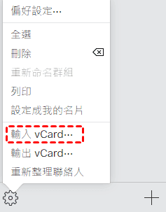 2. 點擊視窗中的“設定”標籤 > 選擇“匯入 vCard”。