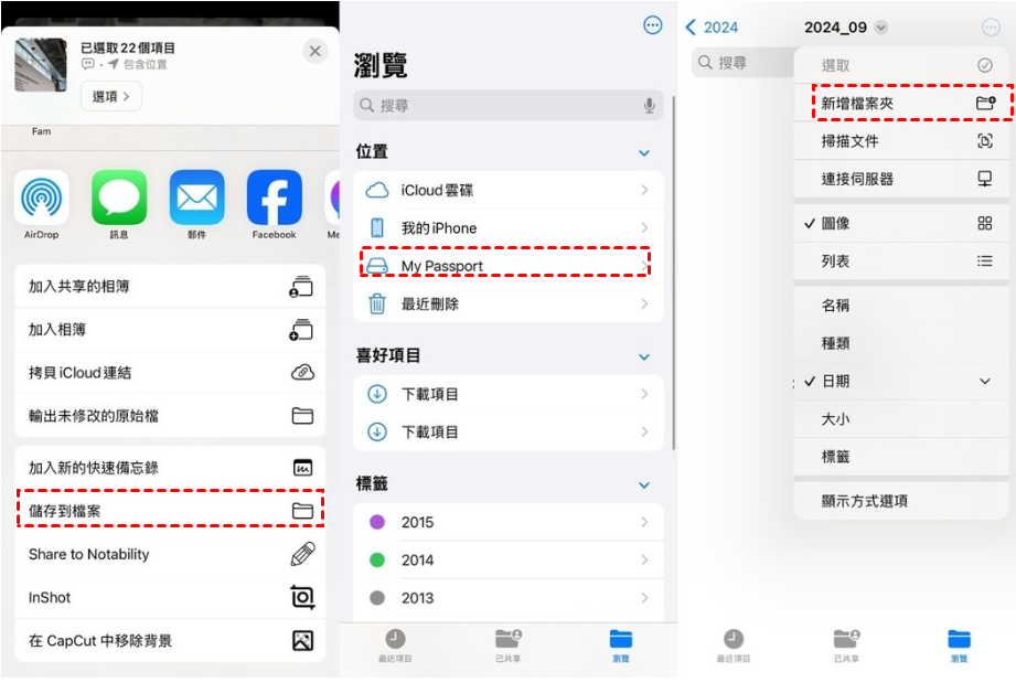 步驟5. 點擊分享按鈕,在點擊儲存到檔案。