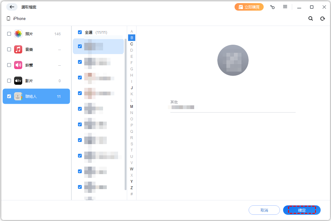 👍提供預覽功能,讓您選擇並確定轉移的聯絡人。