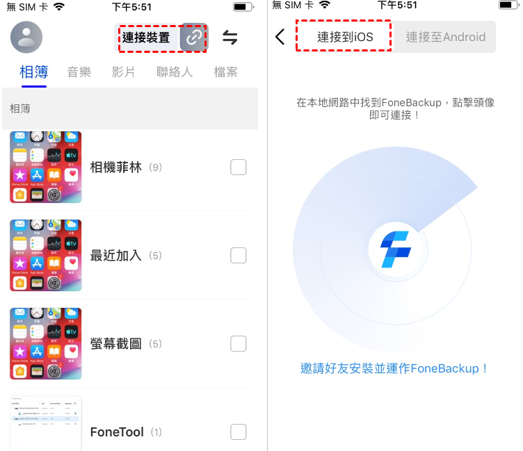 FoneBackup支援行動裝置和Windows,您可以在電腦上透過FoneBackup將iPhone照片轉移到新手機,也可以直接在裝置上透過iOS版FoneBackup傳iPhone照片到iPhone,具體作業方法您可以依照下面的步驟進行參考。