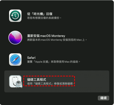 步驟3. 找到「磁碟工具」,選取安裝 iTunes 的磁碟或分區。