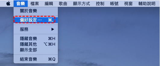步驟1. 點選 Mac 左上角的「音樂」>「偏好設定⋯」。