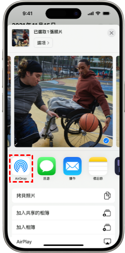 - 支援傳送大量照片,且能一鍵直接轉移相簿。