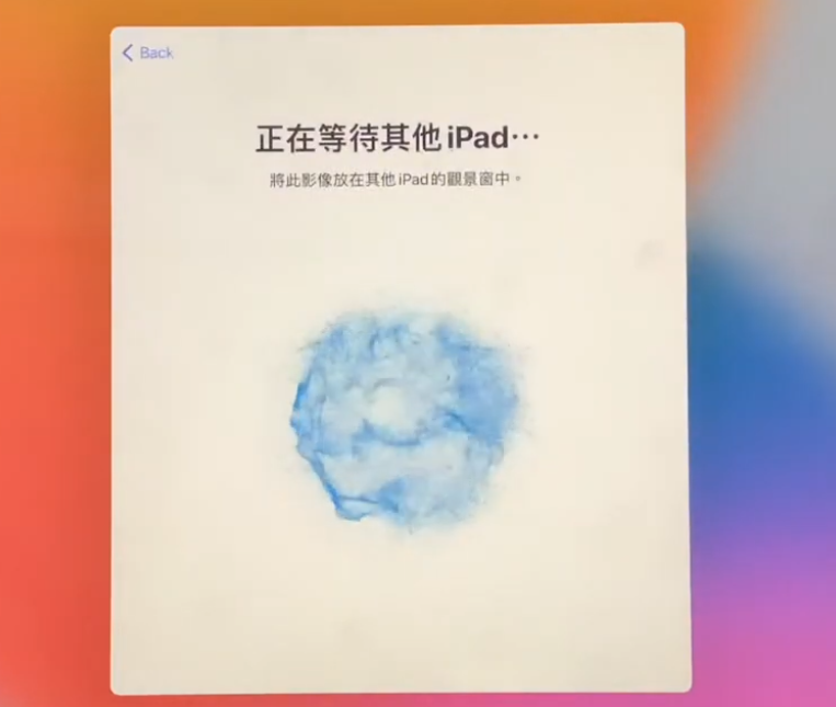 步驟3. 當新iPad出現「藍色動畫」時,將舊iPad鏡頭框對準動畫進行驗證。