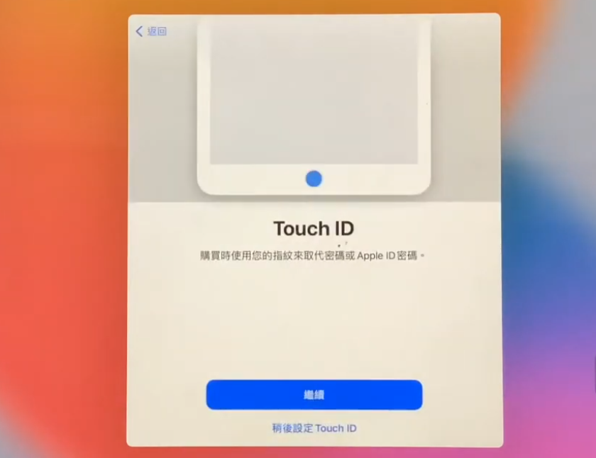 步驟2. 在舊iPad出現「設定新的iPad」時點擊「繼續」按鈕。
