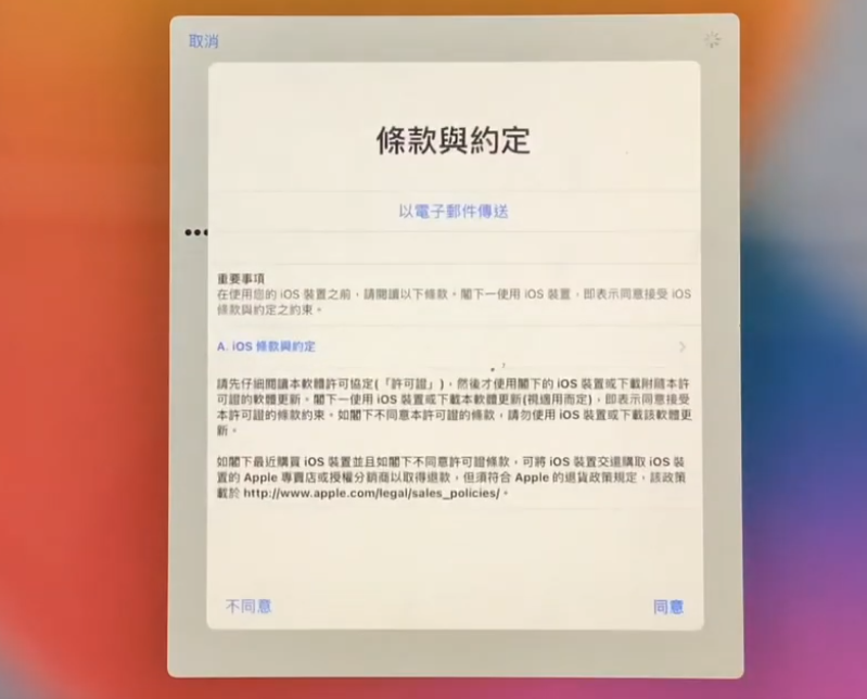 步驟6. 點選「從iPad轉移」 > 點擊「同意條款與細則」 > 點擊「繼續」將此設定為新iPad。