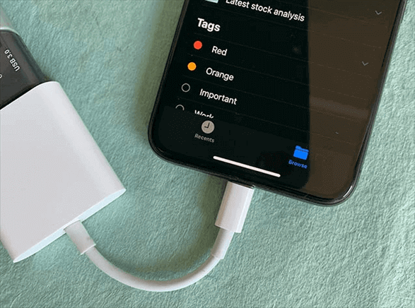 - 如果是其他型號的 iPad 或 iPhone,則應使用 Lightning 轉 USB 轉接器連接任何 隨身碟。