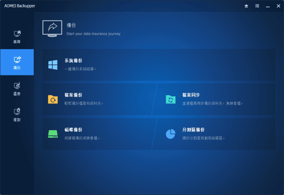 創建Windows作業系統、分區或整顆硬碟的映像備份。 此外,您可以選擇備份或同步保護檔案。