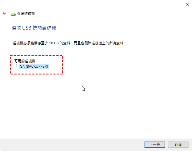 方法2. 使用內建工具建立 Windows 10/11 修復 USB