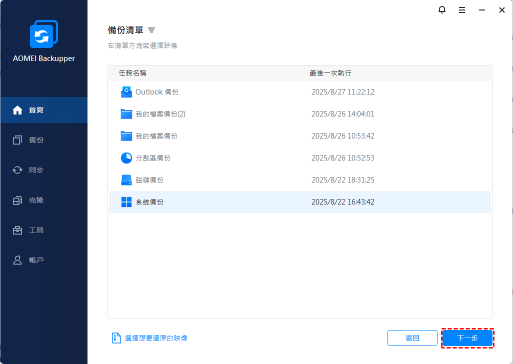 3. 然後,您可以從備份清單中選擇正確的備份,再點選下一步。