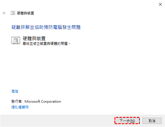 2. 然後點選“下一步”運行故障排除程式,按照螢幕上的說明進行操作,並在出現提示時選擇相關響應以完成故障排除過程。