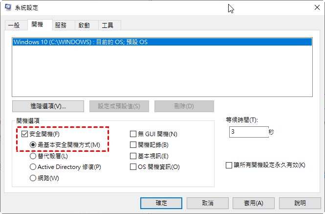安全模式支援您以非常基本的狀態啟動作業系統,因此某些應用程式可能無法正常執行,或者您的電腦執行速度可能比平時慢一些。由於某些驅動程式未執行的影響,這是完全正常的。