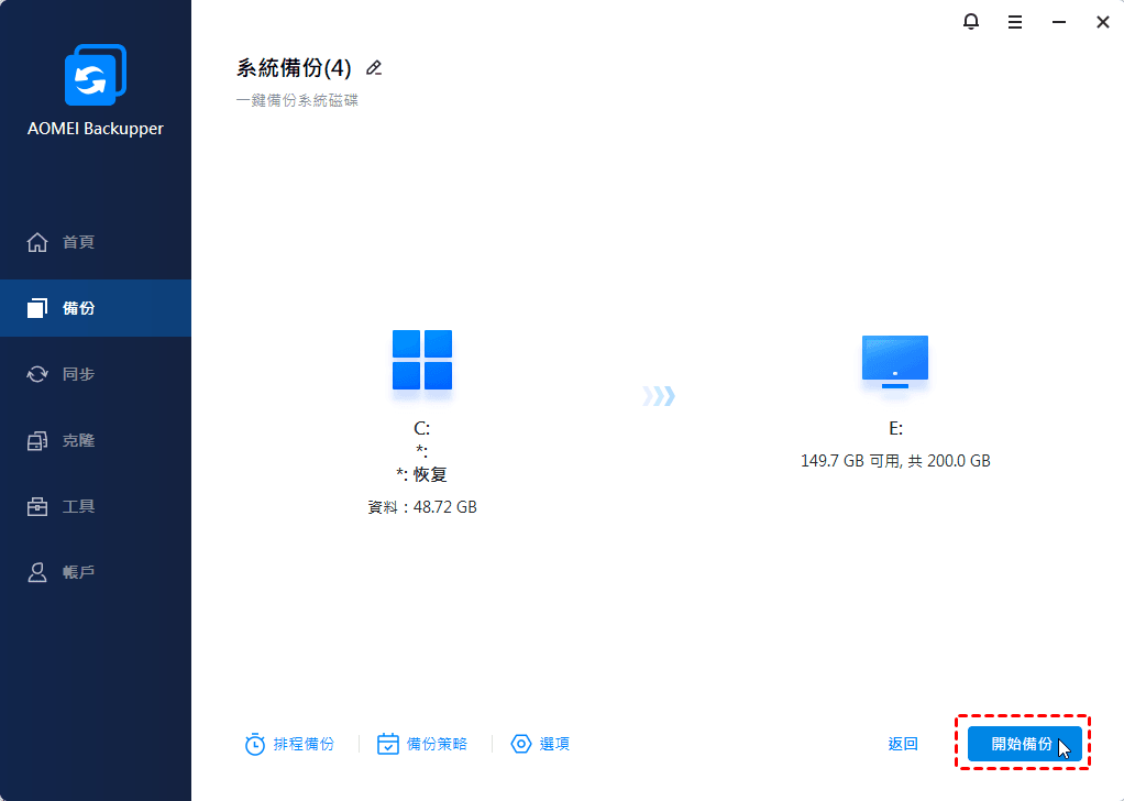 步驟 3. 完成所有設定後,點選開始備份立即開始備份。