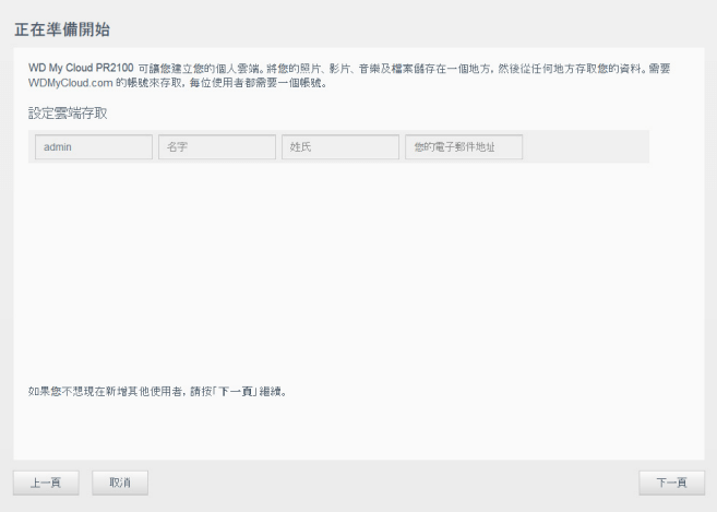 5. 要跳過雲端訪問配置,點擊“下一頁”。