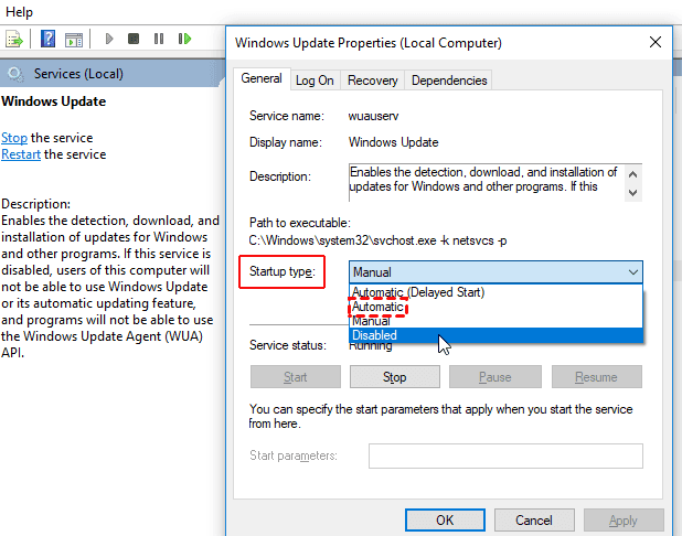 3. On the General tab, change the Startup type to Automatic and click the OK button.