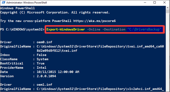 Way 2: Backup Drivers in Windows 10 via PowerShell