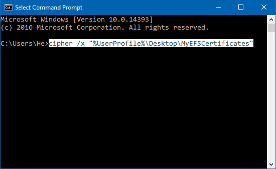 cipher /x "%UserProfile%\Desktop\MyEFSCertificates"