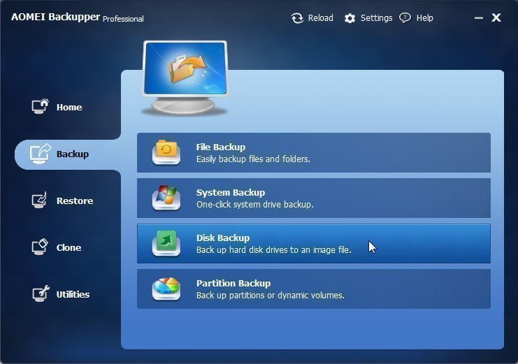 You can easily ghost hard drive in Windows 10 with the help of the best ghost software for Windows 10 - AOMEI Backupper. It offers users two options, namely "Disk Clone", and "Disk Backup", and you can select one of them based on your needs.