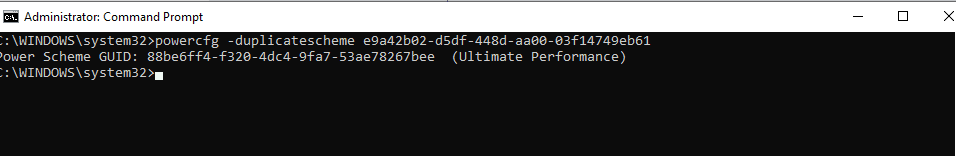 - powercfg -duplicatescheme e9a42b02-d5df-448d-aa00-03f14749eb61 (for Ultimate Performance)