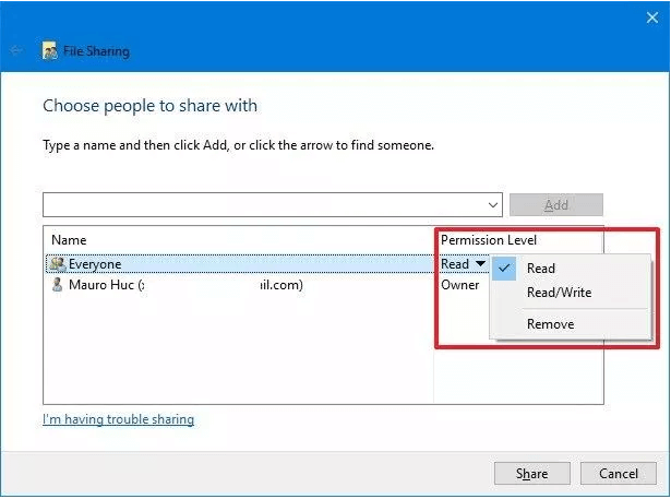 *Read: users can view and open the sharing files.