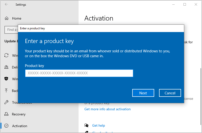 Or, you could reactivate Windows 10 via a product key if you have a retail key: open Settings > Update & Security > Activation > Change Product Key, then enter your 25-digit product key.